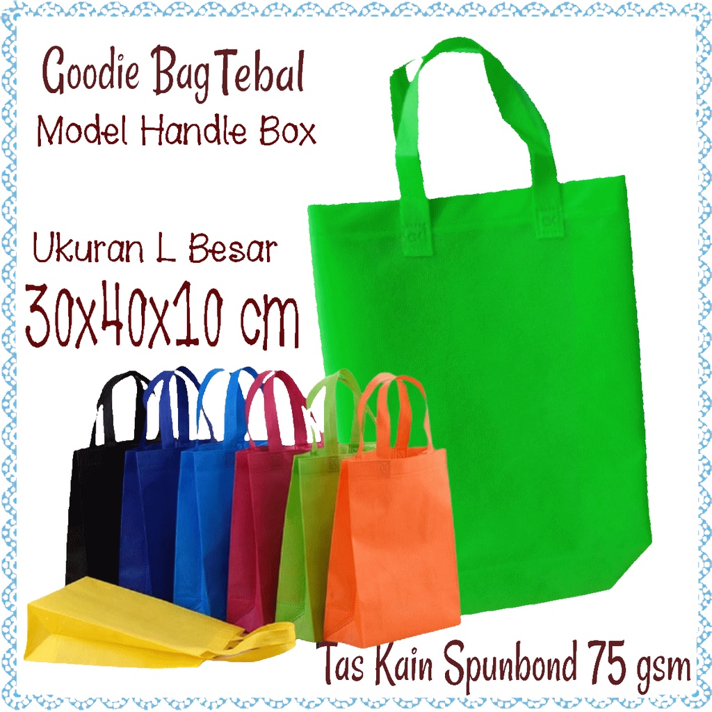 Tas Spunbond Tali 30x40x10 Handle Box / Kotak Goodie Bag Untuk Kantong Belanja Lipat, Sembako, Souveir Ulang tahun / Pernikahan / Hajatan / Pernikahan / Tasyakuran / Syukuran Polos Besar 30x40 Mudah di Kustom Sablon Murah