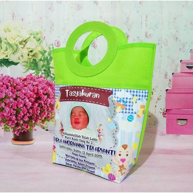 Tas Ulang Tahun /Tas Aqiqah serut kotak nasi 20x20