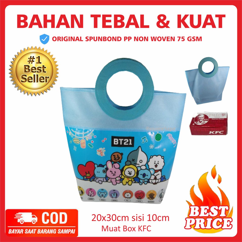 Tas Ultah BT21 Pegangan Bulat BT21 Promo BTS Tas SouvenirGoodie Bag BT21 Blue Murah Unik Terlaris